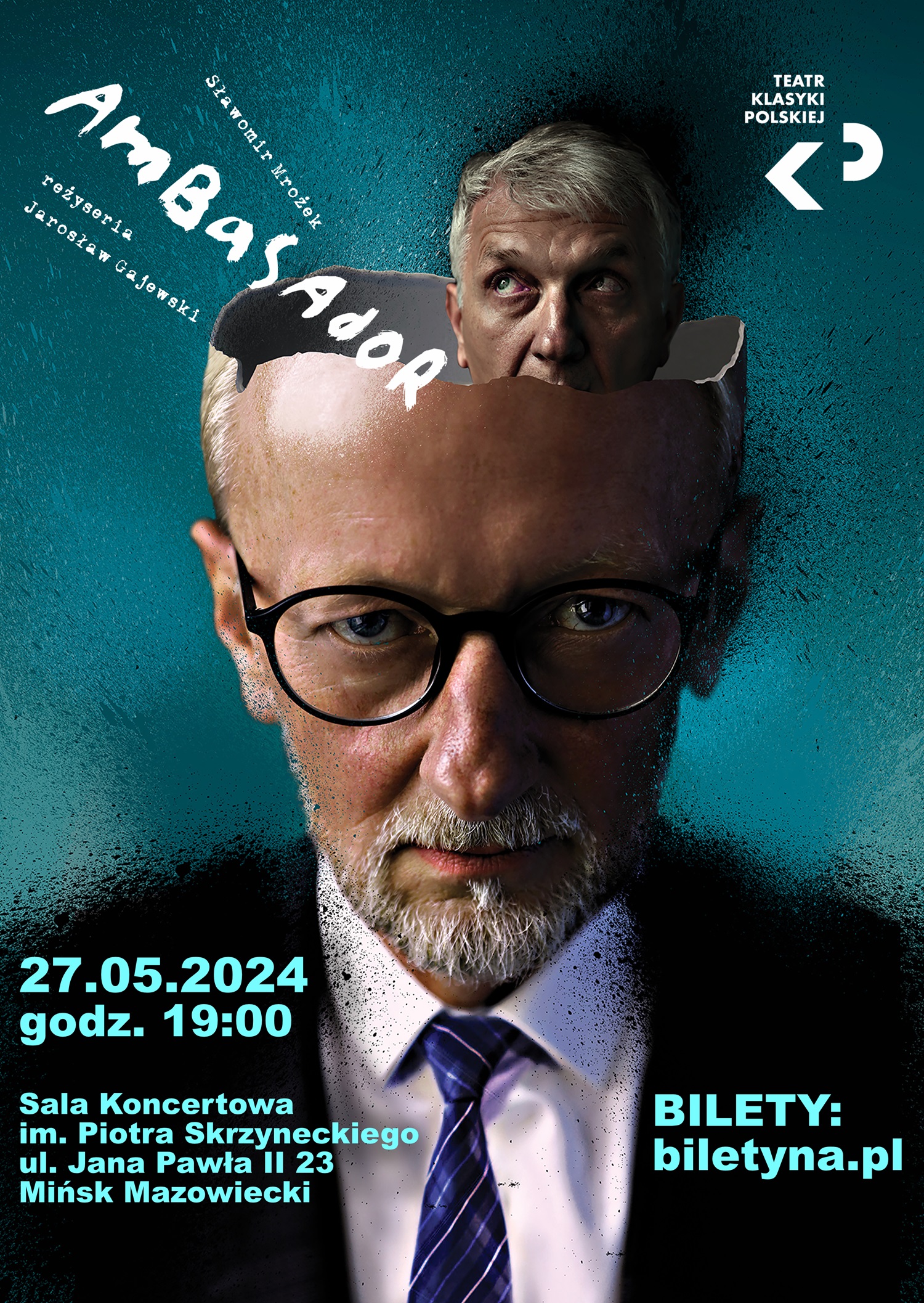 Absurdalny humor połączony z poważną refleksją nad kondycją współczesnego świata. Komizm przeplatający się z tragizmem, banał ze wzniosłością, farsa z dramatem. Oto „Ambasador” Sławomira Mrożka w reżyserii Jarosława Gajewskiego, który wystawiony zostanie 27 maja o godzinie 19.00 w Sali Koncertowej Miejskiej Szkoły Artystycznej I stopnia w Mińsku Mazowieckim.
